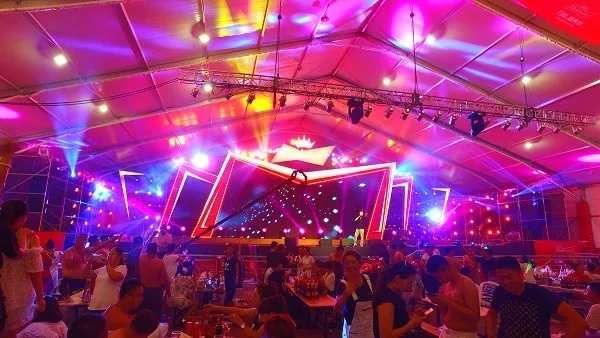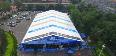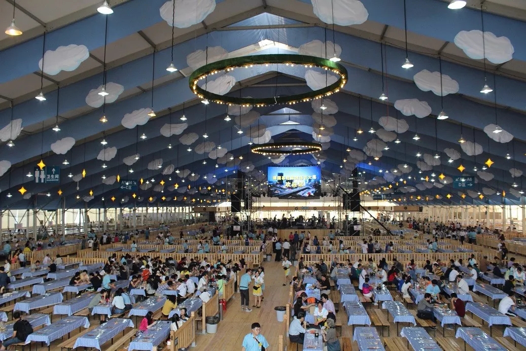 在寬大的高山篷房里,除了裝進一座足球場,四周還能擺10排啤酒桌~