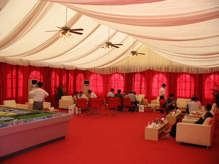 在選擇篷房表面的時(shí)候,首先篷房框架的頂部和周遭的部門所運(yùn)用的布料是始末雙表面圖層辦理的,而且布料通常都是由滌綸長(zhǎng)絲所制成的PVC。