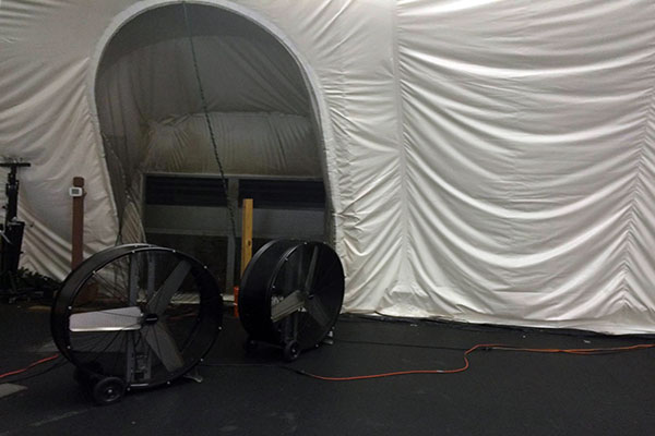 一般配備兩臺(tái)主風(fēng)機(jī),室內(nèi)需要新風(fēng)時(shí),兩臺(tái)風(fēng)機(jī)同時(shí)運(yùn)轉(zhuǎn),保證新風(fēng)量的供應(yīng),滿(mǎn)足室內(nèi)人員呼吸新鮮空氣的需要;室內(nèi)沒(méi)有人活動(dòng)時(shí),只開(kāi)一臺(tái)主風(fēng)機(jī),提供足夠的內(nèi)外氣壓差,保證氣膜建筑正常工作,同時(shí),為用戶(hù)盡量節(jié)省電能。另外配備一臺(tái)備用風(fēng)機(jī),當(dāng)主風(fēng)機(jī)發(fā)生故障時(shí),啟動(dòng)備用風(fēng)機(jī)。