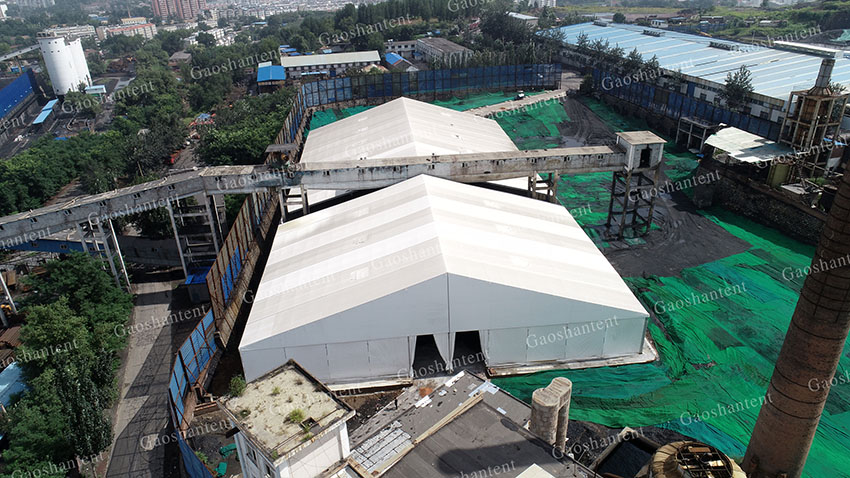 高山環(huán)保篷房以其優(yōu)越的密閉性能、施工快捷、可二次利用等特性,廣泛適用于煤炭企業(yè)開(kāi)采、加工、倉(cāng)儲(chǔ)等各個(gè)環(huán)節(jié),形成密閉的作業(yè)空間,避免對(duì)周邊環(huán)境產(chǎn)生二次污染。