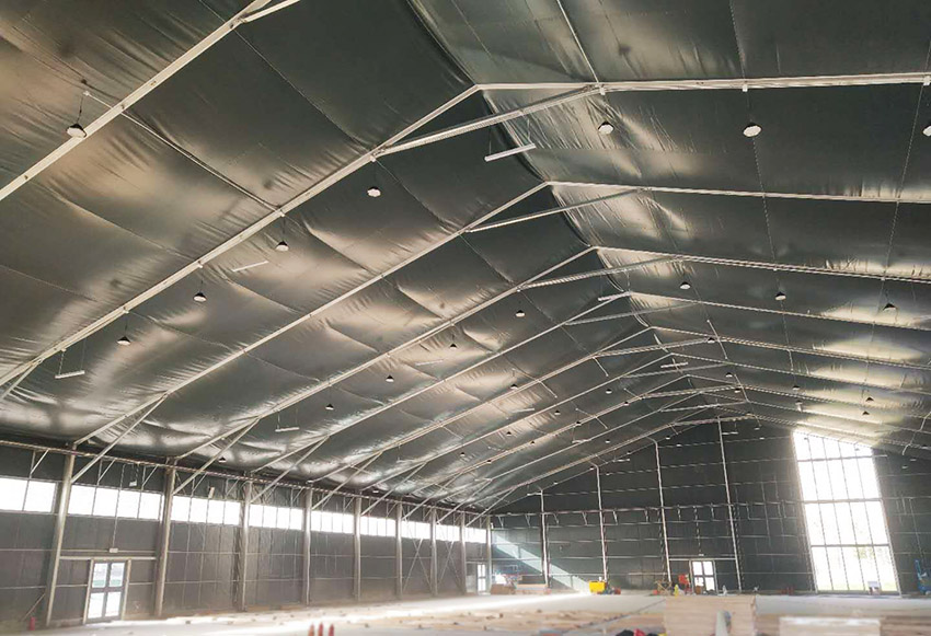 篷房和氣膜建筑的保溫材料可選用巖棉與玻璃絲綿,采用專用機械設(shè)備加工成保溫成品,防火等級達到A類。傳統(tǒng)建筑使用彩鋼瓦中間夾棉,現(xiàn)選用PVDF膜材與保溫棉相結(jié)合,增加了氣密性,耐酸耐堿耐腐蝕。