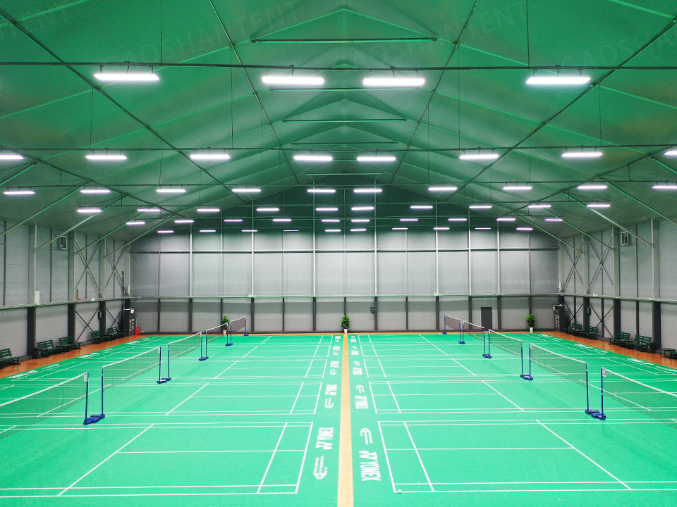 館內(nèi)設(shè)施齊全,配備專業(yè)照明系統(tǒng)和空調(diào)系統(tǒng),頂部篷布加棉設(shè)計(jì)保溫隔熱,顯著降低空調(diào)負(fù)荷。弧形設(shè)計(jì)外觀現(xiàn)代大方,邊高達(dá)7.5米,為球類運(yùn)動(dòng)提供充足空間。