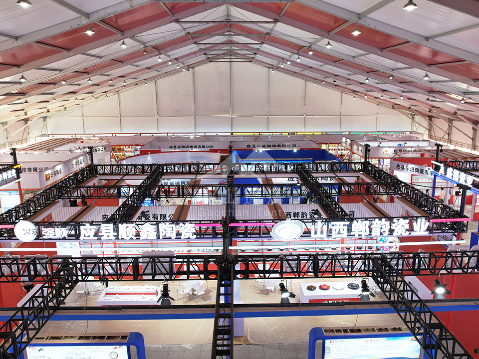篷房內(nèi)部空間開闊,占地達(dá)數(shù)千平方米,為來自朔州本地及國內(nèi)外的陶瓷企業(yè)提供了完美的展示平臺。參展商紛紛展示各自的精品力作,包括日用瓷、建筑瓷、工藝瓷等多元化產(chǎn)品。