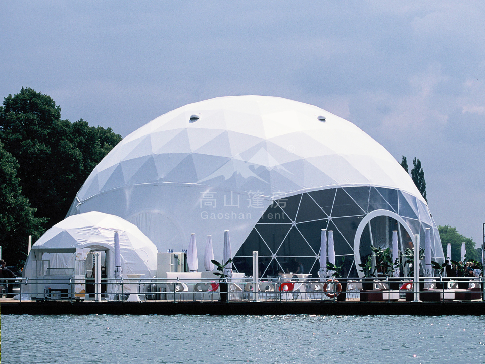 篷房采用高強(qiáng)度鍍鋅鋼管與850g/㎡雙面PVC阻燃篷布,抗風(fēng)等級(jí)達(dá)8-10級(jí),抗震性能通過國家標(biāo)準(zhǔn)檢測(cè)。篷布具備防火(歐洲B1級(jí)阻燃)、防水、防紫外線功能,在-30℃至50℃環(huán)境下保持穩(wěn)定性,使用壽命可達(dá)20年。此外,球形結(jié)構(gòu)分散壓力,遭遇強(qiáng)風(fēng)或積雪時(shí)不易變形,安全性遠(yuǎn)超普通帳篷。