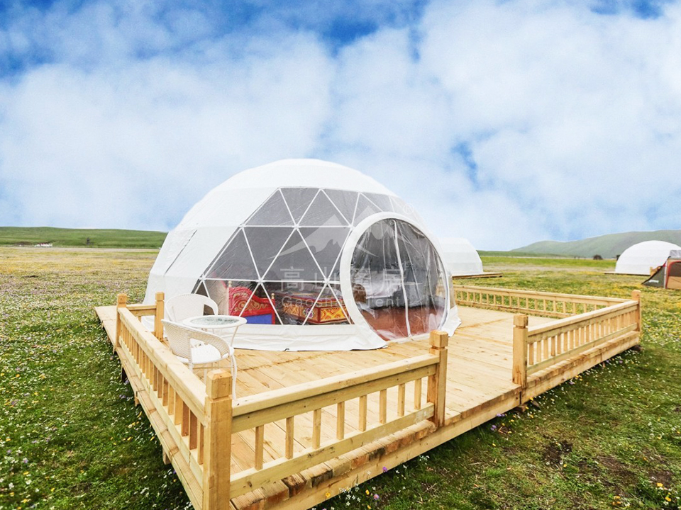 模塊化組件使球形篷房可在24小時(shí)內(nèi)完成千平方米級(jí)搭建,無需復(fù)雜地基,沙地、草坪、硬質(zhì)地面均可快速落地。其組件拆裝后體積小巧,支持多次遷移重復(fù)使用,特別適合音樂節(jié)、快閃店等短期活動(dòng)。用戶可根據(jù)需求選配全透明、半透明或不透明篷布,搭配空調(diào)、地板、照明系統(tǒng),快速切換為展覽廳、餐廳、冰雪場(chǎng)館等功能空間。