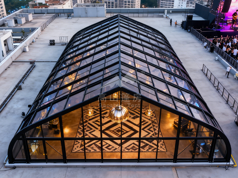 桃型篷房的弧形頂設(shè)計借鑒了房屋屋頂?shù)牧骶€型理念,外觀優(yōu)雅時尚,線條流暢如跳動的音符,能有效吸引目光,提升活動格調(diào)。其弧形結(jié)構(gòu)不僅是為了美觀,更蘊含空氣動力學智慧,可增強抗風能力,避免傳統(tǒng)四角篷房易受風力影響的弱點。篷房內(nèi)部采用無柱大跨度設(shè)計,空間利用率高,可根據(jù)活動需求靈活布局,無論是展覽、婚禮還是商業(yè)促銷,均能提供開闊且無障礙的場地。