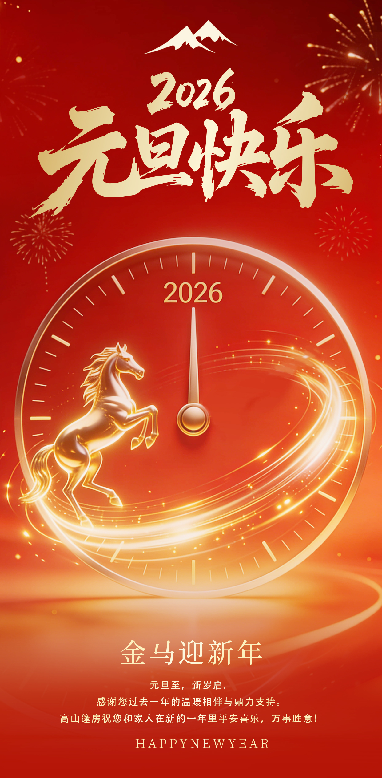 時(shí)光荏苒,歲月如歌。當(dāng)2025年的日歷翻至最后一頁,新年的鐘聲即將敲響,我們滿懷感激與期待,迎來了充滿希望的2026年。在此元旦佳節(jié)之際,高山篷房建筑科技(遼寧)有限公司向一直以來信任、支持我們的每一位客戶、合作伙伴及全體員工,致以最誠摯的感謝和最美好的新年祝福!