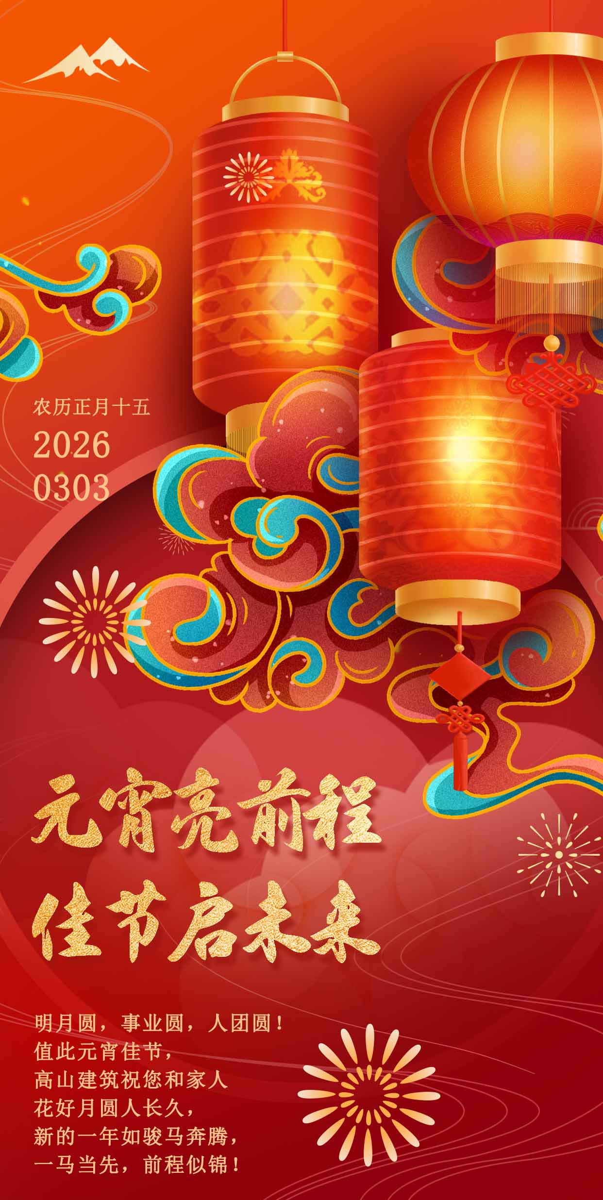 燈火璀璨映佳節(jié),元宵安康啟新篇。當(dāng)一輪圓月懸于夜空,當(dāng)一盞盞花燈點(diǎn)亮街巷,我們迎來了正月十五元宵節(jié)——這個(gè)承載著團(tuán)圓期許、寄托著美好愿景的傳統(tǒng)佳節(jié)。值此良辰,高山篷房向每一位并肩同行的伙伴、每一位支持信賴我們的客戶,致以最誠(chéng)摯的元宵祝福,愿大家歲歲皆圓滿,事事皆順意。