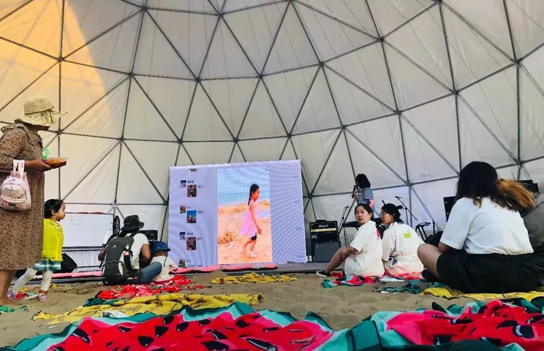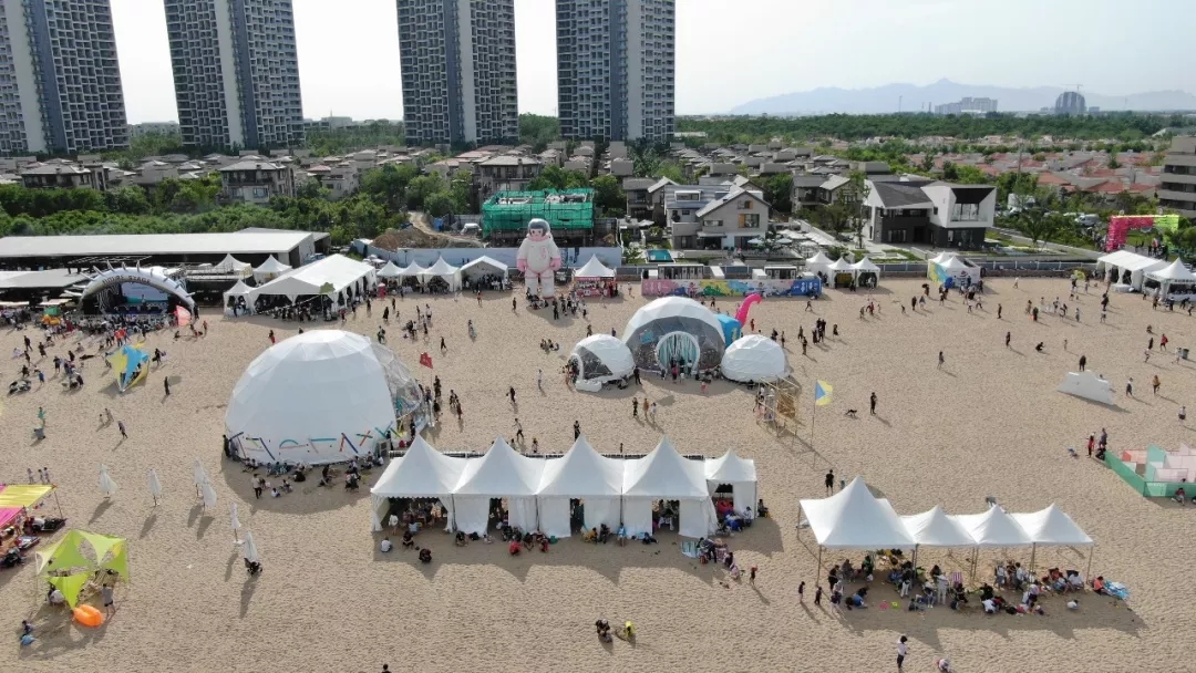 綿延數(shù)百米的黃金沙灘上,在高山搭建的六十余座篷房?jī)?nèi),音樂(lè)Live Show,互動(dòng)藝術(shù)工坊,親子玩樂(lè)體驗(yàn)區(qū),童趣打卡景觀......