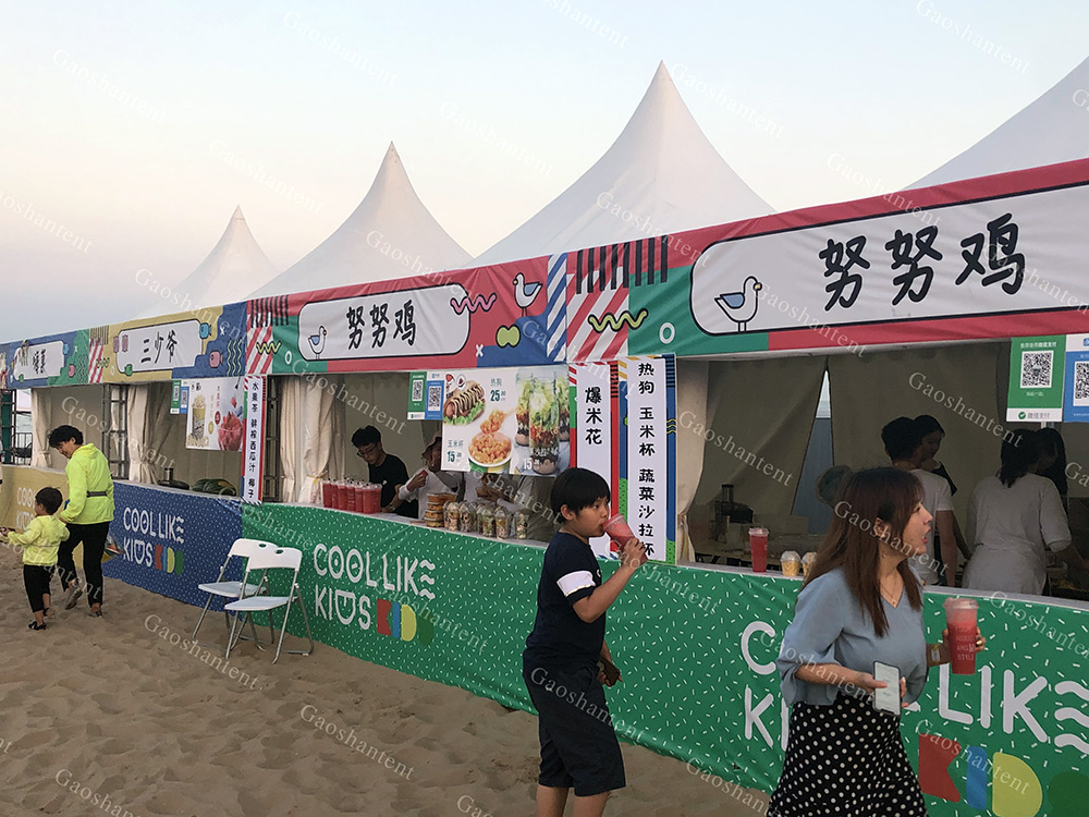 臨時售票廳/接待處:臨時室外活動使用時間短,高山尖頂篷房可靈活拆搭,功能性強,廣泛應用于車站、會議、演唱會、體育賽事等大中小型活動。