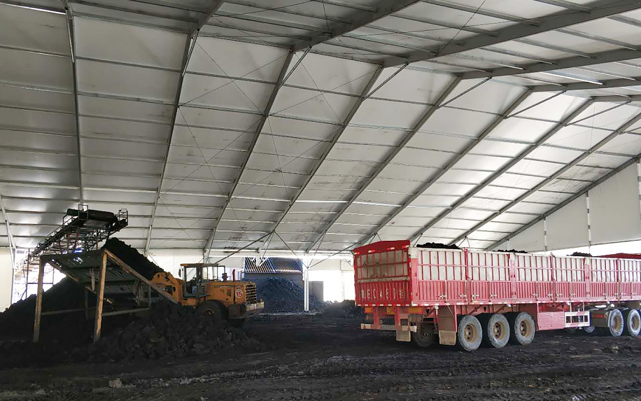 眾多周知,煤因?yàn)楹写罅苛虺煞旨捌渖a(chǎn)加工中涉及的其他化學(xué)物質(zhì),對于鋼鐵腐蝕非常明顯,傳統(tǒng)的密閉設(shè)施,往往短時(shí)間內(nèi)就生銹、損壞,直接影響了企業(yè)的利潤水平和正常生產(chǎn),倉儲篷房采用的是高耐腐蝕的篷布及高強(qiáng)度鋁型材,使用年限一般在10年以上,正??梢赃_(dá)到15年。明顯超出鋼鐵結(jié)構(gòu)密閉設(shè)施壽命。